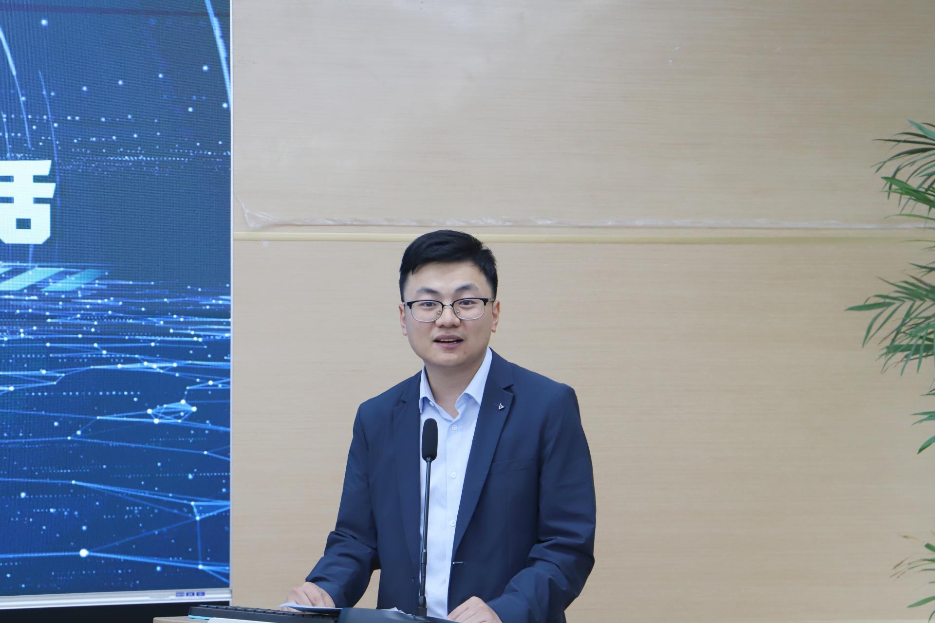 人工智能研究院副院长刘振焘博士发言,他指出未来技术前沿论坛是师生交流的窗口,是同学们学术成果集中展示,创新思想相互碰撞的平台。他希望全体学生一是要积极参与,主动交流,在交流互动中产生思想碰撞的火花。二是要学科交叉,各显神通,取长补短,积极探索学科交叉融合的魅力。三是要及时总结,再创辉煌,借助思想碰撞的火花,不断完善自己的研究工作,储备未来研究的新思路,力争突破所在学科领域的瓶颈问题。