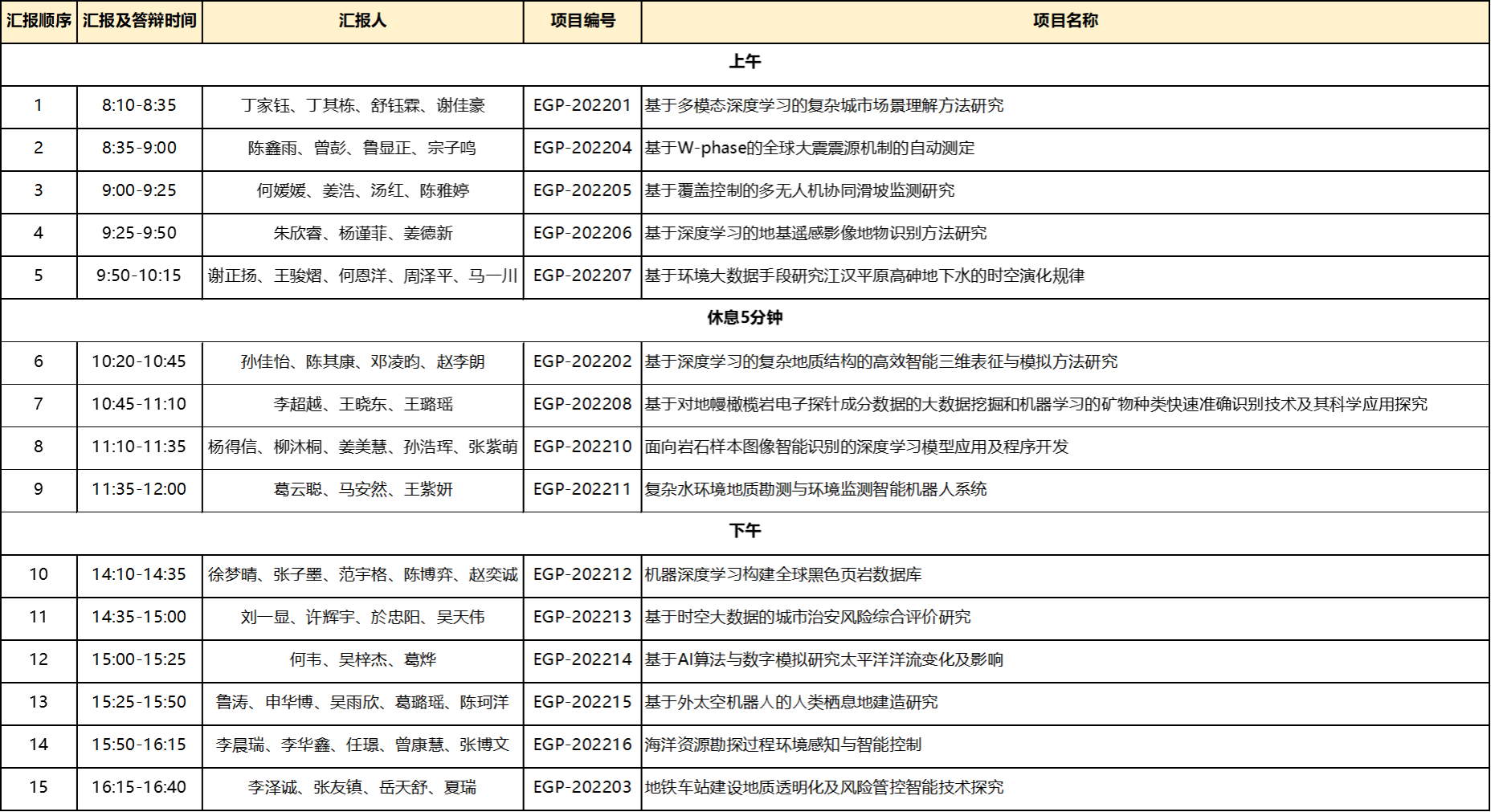 报告安排: