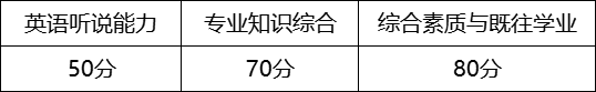 2.综合面试。重点考察考生的思想政治素质和品德考核、专业综合能力、创新潜质和能力、外语能力水平、综合素质评价、心理健康状况等。综合面试一般包括考生自述、考生随机抽题作答、面试小组提问交流、专家评分等环节,考核时长一般不少于20分钟。综合面试满分200分,《面试考核评分细则》见附件3。各部分分值及占比如下: